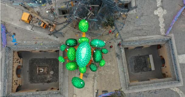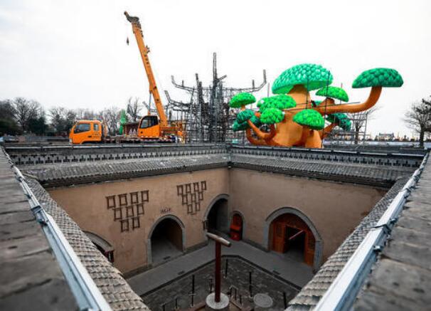 河南三門峽,陜州地坑院2019新春燈會緊張制作中,整個花燈制作工程已完成40%。